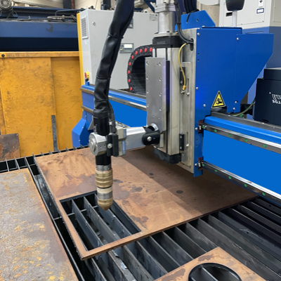 Der Vorteil von Plasmazuschnitten gegenüber dem Laser ist die Wirtschaftlichkeit. Die Schnittgeschwindigkeiten sind bei den dickeren Blechstärken ähnlich bzw. gleich schnell wie beim Laser. Die Maschine ist jedoch beim Invest und in der Wartung deutlich günstiger und hat damit einen günstigeren Stundensatz.